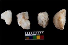 | Description / विवरण | Four utilised worked cores with sharp edges. Some of them are tapering at one end. Removal of flakes from few sides. |
