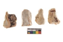 | Description / विवरण | There are n 4 of utilized worked cores and show irregular scar pattern on both dorsal and ventral side. One has a broken tip while one has a flat base. |