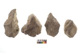 | Description / विवरण | There are n 4 of utilized worked cores and show irregular dominant scar pattern. Three are tapering at one end. |