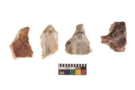 | Description / विवरण | There are n 4 of utilized worked cores and show irregular scar pattern on both dorsal and ventral side. Two have a flat base. |