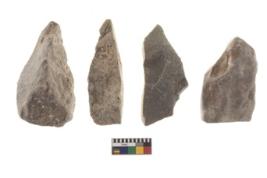 | Description / विवरण | There are n 4 of utilized worked cores and show irregular dominant scar pattern on both dorsal and ventral side. Three have a flat base. |