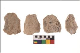 | Description / विवरण | There are n 4 flakes;there are triangular flake with wavy thick distal end and pointed functional top.It reained pebbly cortex on one side and irregular thin edge on the other. |