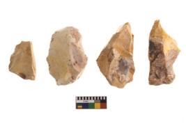 | Description / विवरण | There are n 4 of utilized worked cores and show irregular scar pattern on both dorsal and ventral side. Two are tapering at one end. |