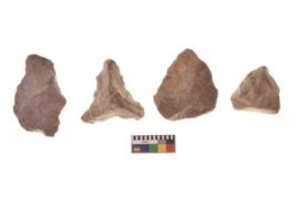 | Description / विवरण | There are n 4 of utilized worked cores and show irregular scar pattern on both dorsal and ventral side. They are tapering at one end. |