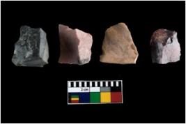 | Description / विवरण | Four worked utilised cores. Flakes removed from few sides. Most of them are uneven and few are tapering at one end. |