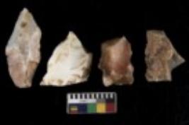 | Description / विवरण | There are n 4 utilized flake cores. There are multi directional irregular scar pattern on them. One is tapering at one end and three have blunted edges. |