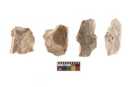 | Description / विवरण | There are n 4 of utilized worked cores and show irregular scar pattern on both dorsal and ventral side. Two are elongated in shape. |