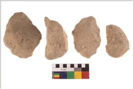 | Description / विवरण | Specimen of a Irregular flaked pebble with projected pointed top and flat bottom. |