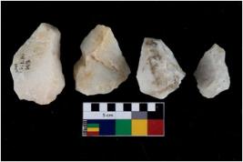 | Description / विवरण | There are n 4 of utilized worked cores and have irregular dominant scar pattern. They are tapering at one end. |