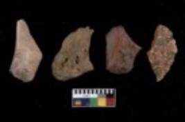 | Description / विवरण | There are n 4 utilized flake cores. There are multi directional irregular scar pattern on them. Two have sharp edges and two are tapering at one end. |