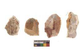 | Description / विवरण | There are n 4 of utilized worked cores and show irregular scar pattern on both dorsal and ventral side. One is elongated in shape. |