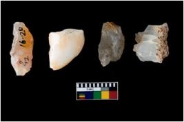 | Description / विवरण | Four worked utilised cores. Flakes removed from few sides. Most of them are uneven and few are tapering at one end. |