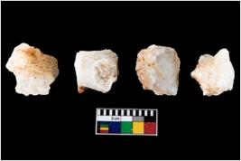 | Description / विवरण | Four worked utilised cores. Flakes removed from few sides. Most of them are uneven and few are tapering at one end. |