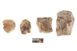 | Description / विवरण | There are n 4 of utilized worked cores and show irregular scar pattern on both dorsal and ventral side. One has a flat base. |