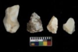| Description / विवरण | There are n 4 utilized flake cores. There are multi directional irregular scar pattern on them. One is tapering at one end and three have blunted edges. |