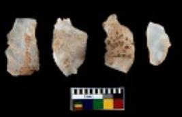 | Description / विवरण | There are n 4 utilized flake cores. There are multi directional irregular scar pattern on them. Three are tapering at one end and one has sharp edge. |