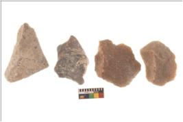 | Description / विवरण | Specimen of a Irregular flaked pebble with projected pointed top and flat bottom. |