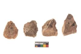 | Description / विवरण | There are n 4 of utilized worked cores and show irregular scar pattern on both dorsal and ventral side. Three are tapering at one end. |
