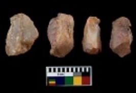| Description / विवरण | There are n 4 utilized flake cores. Out of them one is made up of Chert and three are made up of Chalcedony. There are multi directional irregular scar pattern on them. All of them are tapering at one end. |