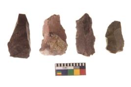 | Description / विवरण | There are n 4 flakes tool; there are flakes tool with prominent flaking marks. It made up of a large flakes with sides trimmed. It is rectangular in shaped. |
