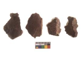 | Description / विवरण | There are n 4 flakes tool; there are large flakes with sides trimmed, Marks of secondary flaking are present on the both the faces.The dorsal is relatively flat. One is pointed functional top. |
