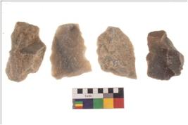 | Description / विवरण | Specimen of a Irregular flaked pebble with projected pointed top and flat bottom. |
