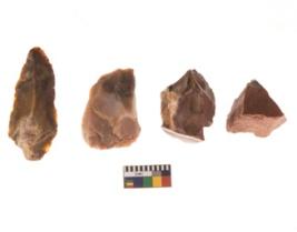 | Description / विवरण | There are n 4 flakes tool; there are large flakes with sides trimmed, Marks of secondary flaking are present on the both the faces.The dorsal is relatively flat. One is pointed functional top. |
