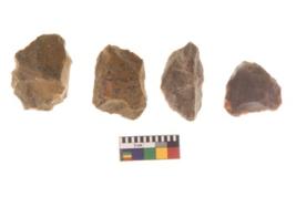 | Description / विवरण | There are n 4 flakes tool; there are large flakes with sides trimmed, Marks of secondary flaking are present on the both the faces.The dorsal is relatively flat. |