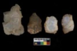 | Description / विवरण | There are n 4 utilized flake cores. There are multi directional irregular scar pattern on them. One is tapering at one end and three have blunted edges. |