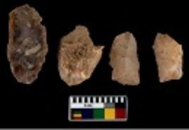 | Description / विवरण | There are n 4 utilized flake cores. There are multi directional irregular scar pattern on them. One is tapering at one end and three have blunted edges. |