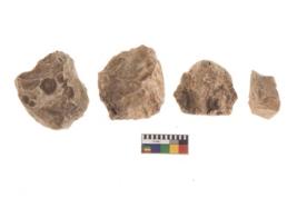 | Description / विवरण | There are n 4 of utilized worked cores and show irregular scar pattern on both dorsal and ventral side. Two have a flat base. |