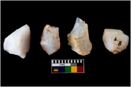 | Description / विवरण | Four worked utilised cores. Flakes removed from few sides. Most of them are uneven and few are tapering at one end. |