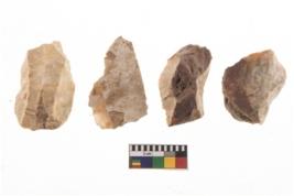 | Description / विवरण | There are n 4 of utilized worked cores and show irregular scar pattern on both dorsal and ventral side. They have sharp edges. |