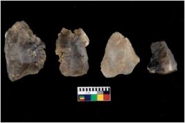 | Description / विवरण | There are n 4 of utilized worked cores and show scar pattern. Two have a broken tip. |