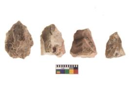 | Description / विवरण | There are n 4 of utilized worked cores and show irregular scar pattern on both dorsal and ventral side. Three are tapering at one end while one has a broken tip. |