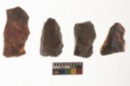 | Description / विवरण | There are n 4 utilized flake cores. There are multi directional irregular scar pattern on them. One is tapering at one end and three have blunted edges. |