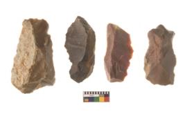 | Description / विवरण | There are n 4 flakes tool; there are flakes tool with prominent flaking marks. It made up of a large flakes with sides trimmed. It is rectangular in shaped. |