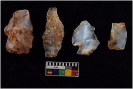 | Description / विवरण | There are n 4 Flakes Cores; they have thin sides which are sharp and ridge lines are visible too. All vary in shape and size. |