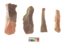 | Description / विवरण | There are n 4 flakes tool; there are large flakes with sides trimmed, Marks of secondary flaking are present on the both the faces.The dorsal is relatively flat. |