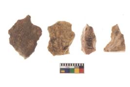 | Description / विवरण | There are n 4 of utilized worked cores and show irregular scar pattern on both dorsal and ventral side. One has a flat base. |