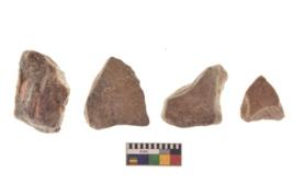 | Description / विवरण | There are n 4 of utilized worked cores and show irregular scar pattern on both dorsal and ventral side. Three have a flat base. |