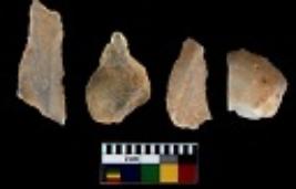 | Description / विवरण | There are n 4 utilized flake cores. There are multi directional irregular scar pattern on them. One is tapering at one end and three have blunted edges. |