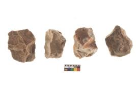 | Description / विवरण | There are n 4 of utilized worked cores and show irregular scar pattern on both dorsal and ventral side. Three havea broken tip. |