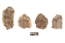 | Description / विवरण | There are n 4 of utilized worked cores and show irregular scar pattern on both dorsal and ventral side. They have sharp edges. |