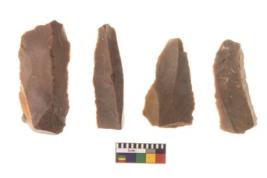 | Description / विवरण | There are n 4 flakes tool; there are flakes tool with prominent flaking marks. It made up of a large flakes with sides trimmed. It is rectangular in shaped. |