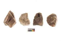| Description / विवरण | There are n 4 of utilized worked cores and show irregular scar pattern on both dorsal and ventral side. Two have a broken tip. |
