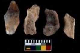 | Description / विवरण | There are n 4 utilized flake cores. Out of them one is made up of Chert and three are made up of Chalcedony. There are multi directional irregular scar pattern on them. Three are tapering at one end and one has sharp edge. |