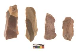 | Description / विवरण | There are n 4 flakes tool; there are large flakes with sides trimmed, Marks of secondary flaking are present on the both the faces.The dorsal is relatively flat. |