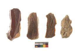 | Description / विवरण | There are n 4 flakes tool; there are large flakes with sides trimmed, Marks of secondary flaking are present on the both the faces.The dorsal is relatively flat. |