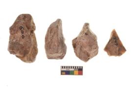 | Description / विवरण | There are n 4 of utilized worked cores and show irregular scar pattern on both dorsal and ventral side. Three are tapering at one end. |